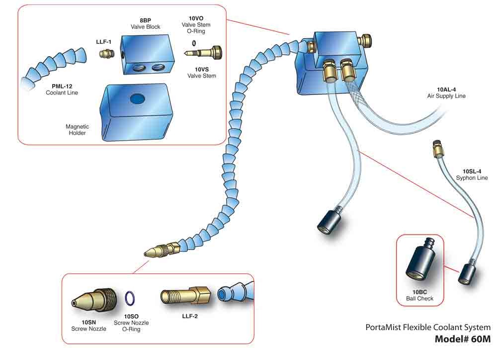 - One PORTaMIST Model 60M unit including air and coolant hoses,